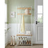 An open design and warm wooden details give this unit its modern appeal. The unit is well-suited to hallways and entranceways, as well as a living room or bedroom, offering a place to store shoes, coats, scarves, umbrellas, and other essentials. The unit features three shelves as well as two hanging racks with nine hooks. Use the top shelf as a bench or a place to store handbags and other items. Assembly is required.